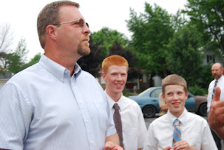 Manly conversations. It looks like Mr. A. is swatting a bug on his head :)